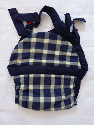Preciosa mochila portabebés, en color azul marino con cuadros amarillos, hasta 9 kg. Está en perfectas condiciones - Cómodo y acolchado para el bebé. - Correas ajustables para mayor comodidad. - Diseño elegante y práctico.