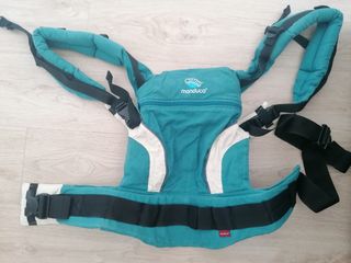 Mochila portabebés de la marca Manduca, ideal para llevar a tu bebé de forma cómoda y segura. - Color verde azulado. - Diseño ergonómico. - Hebillas y correas ajustables. - Usada pero cuidada - Gran oportunidad
