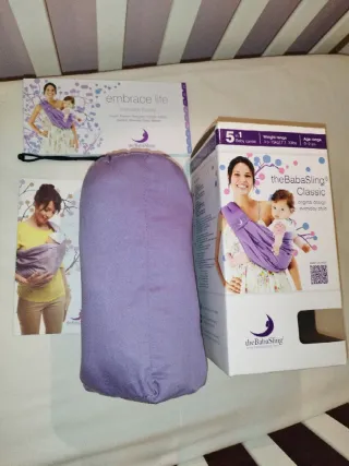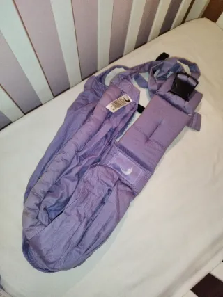 Mochila de porteo de la marca Baba Sling. - Color lila. - Multiposición. - 100% algodón. - Ergonómica. - Edad recomendada: 0-2 años. - Nueva, con su caja original e instrucciones. - Precio en tienda más de 60€. *Puedes ver en mi perfil más artículos de bebé para ahorrarte el envío.