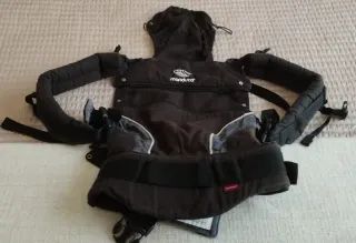 Mochila portabebés en color negro, ideal para llevar al bebé de forma cómoda y segura. - Diseño acolchado en tirantes y cinturón. - Hebillas y ajustes. - Logo de la marca visible.
