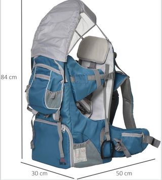 Mochila portabebés diseñada para senderismo y excursiones. - Estructura robusta y cómoda. - Arnés de seguridad ajustable. - Bolsillos laterales de malla. - Soporte para pies. - Patas para apoyarla en el suelo y poder cargar a tu bebé fácilmente.