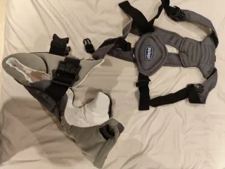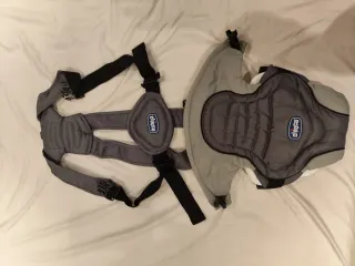 Mochila portabebés de la marca Chicco en color gris. Diseñada para llevar al bebé de forma cómoda y segura. - Acolchado en la zona del bebé. - Correas ajustables para mayor comodidad. - Logo de la marca visible.