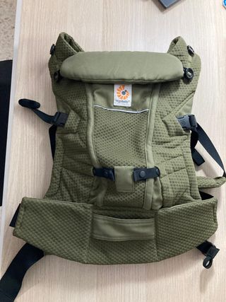 Mochila portabebés Ergobaby en color verde oliva, en perfecto estado. Mochila Adapt de 3 posiciones. Tejido de malla transpirable. Correas para los hombros acolchadas con opción cruzada. Cinturón con apoyo lumbar se puede ajustar más arriba o más abajo en la cintura. El asiento se adapta gradualmente al crecimiento del bebé (3 a 20 kg) mediante unos ajustes de velcro en la parte interior del cinturón. Capucha plegable para proteger la cabeza del bebé del sol y del viento. Soporte extra para cabeza y cuello con panel trasero plegable.