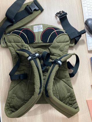 Mochila de material alta calidad , tiene asas acolchadas ,bolsillo central,capucha en varias posiciones,evolutiva y completamente lavable ,tener esta mochila fue la mejor decisión de compra,el bebé se echa siestas y está protegido y pegadito al papá/mamá , se puede usar hasta el año y medio/2 años de edad.Esta en buen estado.