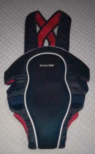 Mochila portabebés Fashion Baby, azul marino y rojo. Hasta 12 kg. En perfecto estado ya que apenas se ha usado. La etiqueta está cortada. - Cómoda y práctica para llevar a tu bebé. - Diseño moderno y atractivo. - Interior rojo acolchado.