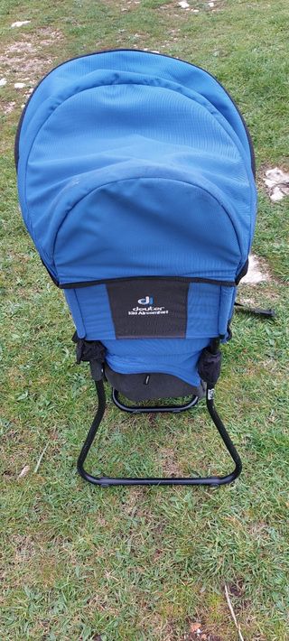 Mochila portabebés Deuter, ideal para montaña y trekking. Diseñada para llevar a los más pequeños cómodamente en tus aventuras al aire libre. - Capota protectora. - Correas acolchadas para mayor comodidad. - Estructura robusta para soporte. NO SE HA ESTRENADO.
