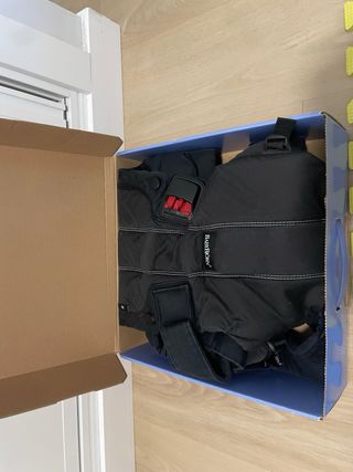 Usada una vez. Se puede usar como mochila o solo como base ya que se desmonta con una cremallera.