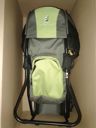 Mochila portabebés Deuter para montaña, en buen estado. Ideal para excursiones con tu pequeño. - Cómoda y práctica para llevar a tu bebé a la montaña. - Diseño ligero y resistente. - Incluye una pequeña bolsa extra. - Estructura metálica comoda para dejar en el suelo