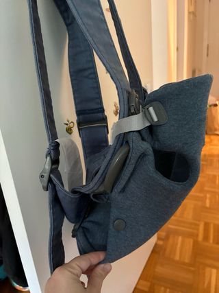 Mochila portabebés BabyBjorn en color gris y azul. -Desde recien nacido hasta los 11 kg - Tirantes acolchados. - Tejido interior suave. - Cierre de seguridad -Lo hemos usado mucho, pero funciona perfectamente