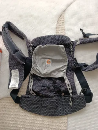 Mochila portabebés Ergobaby en color gris con estampado geométrico. En muy buen estado. Tiene una mancha en la zona interior de la cabeza. - Diseño acolchado para mayor comodidad. - Correas ajustables para un ajuste personalizado. - Capucha integrada para el bebé.