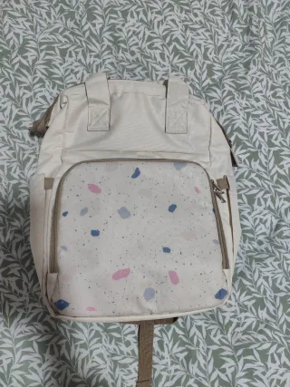 Mochila sin estrenar, práctica y versátil, ideal para bebés o niños. Su diseño moderno la hace perfecta para cualquier ocasión. - Compartimento principal espacioso. - Bolsillos laterales para fácil acceso. - Se adapta al carro o bicicleta y triciclo - Cambiador incluido - Diseño con estampado de confeti en tonos pastel.