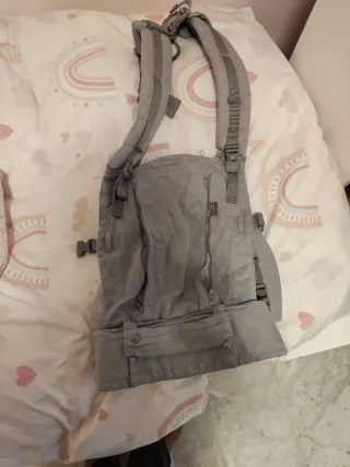 Mochila de porteo Ergobaby 360 en color gris. Permite llevar al bebé en diferentes posiciones. Se ha usado 3 veces porque nos regalaron otra que nos gusto mas. No tiene la caja. - Diseño ergonómico. - Cinturón lumbar ajustable. - Tirantes acolchados.