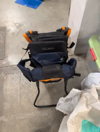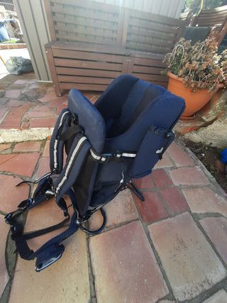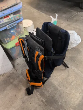 Mochila ergonómica para llevar al bebé de forma cómoda y segura. Buen estado. Con polvo porqué estaba guardado - Diseño en color azul marino y naranja. - Tirantes acolchados ajustables. - Cinturón lumbar para mayor soporte.