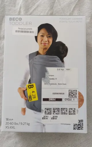 Mochila portabebés Beco Toddler para niños. Nunca usada. - Diseñada para niños de 18 meses en adelante. - Soporta un peso de 20-60 lbs (9-27 kg). - Talla XS-XXL. - Fabricada en 100% poliéster. Nunca