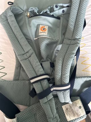 Mochila porta bebés de la marca Ergobaby modelo Embrace soft air mesh en color Sage (verde agua). Está como nueva, en muy buen estado. Se puede utilizar desde el nacimiento hasta los 11,3 kg. Muy fresquita para verano ya que el tejido permite la aireación natural. Súper cómoda y ligera, cabe en cualquier bolso y no pesa nada. se puede lavar en lavadora. Con caja original incluida.