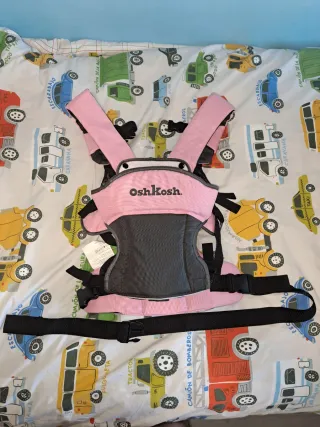 Mochila portabebés en color rosa de la marca OshKosh. - Diseño acolchado para mayor comodidad. - Correas ajustables. - Cierre de seguridad.