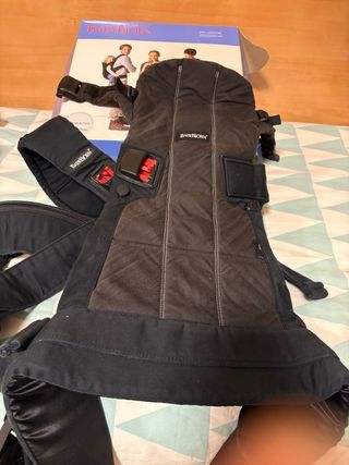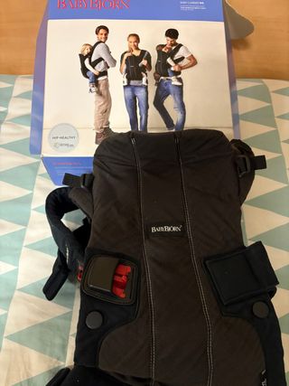 Mochila porta bebé marca BabyBjörn, modelo One, en color negro y estilo mezcla de tejido. Cuesta 200€ nueva - Color: Negro - Estilo: Mezcla de Tejido Está como nueva se ha utilizado solo un par de veces, conserva la caja, las instrucciones y ni siquiera se han cortado las etiquetas de la mochila Se vende porque fue un regalo y yo soy demasiado delgada y me queda grande Acepto ofertas
