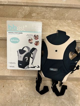 Mochila portabebés bbest en perfecto estado. Ideal para bebés de 3 a 9 kg. - Triple posición para llevar a tu bebé. - Ajustable y cómoda. - Incluye soporte para la cabeza y el cuello del bebé.