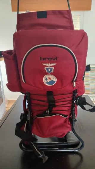 Mochila portabebés Brevi para montaña, en color rojo. Está en buen estado. - Marca: Brevi - Color: Rojo - Ideal para actividades de montaña - Cómoda y ligera, con reposapiés y parasol - Dispone de muchos bolsillos y portabiberon - El tejido es fácilmente lavable - Tanto el cinturón como la espaldera tienen acolchado anatómico - Los tirantes son ajustables y el anclaje del bebé es de 4 puntos - Sirve para niños hasta 15 kg