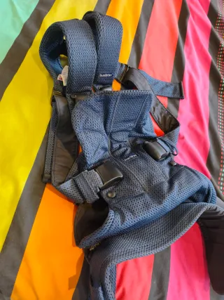 Mochila de porteo BabyBjörn en color azul marino. - Diseñada para bebés de 3,5 kg a 11 kg. - Tirantes ajustables. - Hebillas de seguridad. 10€ Fular / pañuelo porteo sencillo y fácil, tejido de algodón, poco uso 10€ Si quieres los dos por 15€