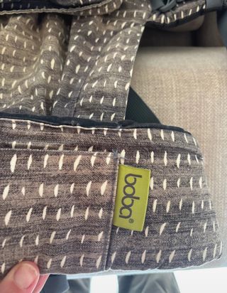 Mochila portabebés de la marca Boba, con un diseño moderno y estampado. - Tejido con estampado de líneas blancas y grises. - Tirantes acolchados para mayor comodidad. - Hebillas ajustables.