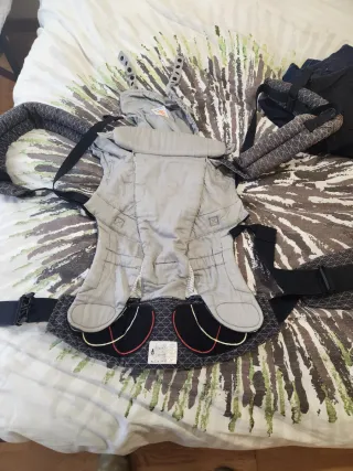 Mochila portabebés Ergobaby en color gris. Diseñada para llevar al bebé de forma cómoda y segura. - Diseño ergonómico. - Tejido acolchado en hombros y cintura. - Bolsillo frontal con cremallera. - Muy poco uso, en perfecto estado