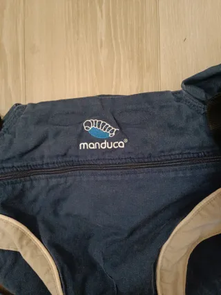 Mochila portabebés de la marca Manduca en color azul. Diseñada para llevar a tu bebé de forma cómoda y segura. - Tejido vaquero. - Capucha integrada. - Cinturón lumbar acolchado. - Incluye reductor para recién nacido.