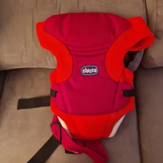 Mochila portabebés de la marca Chicco en color rojo. Ideal para llevar al bebé de forma cómoda y segura. - Diseño ergonómico. - Tejido transpirable. - Logo de la marca visible.