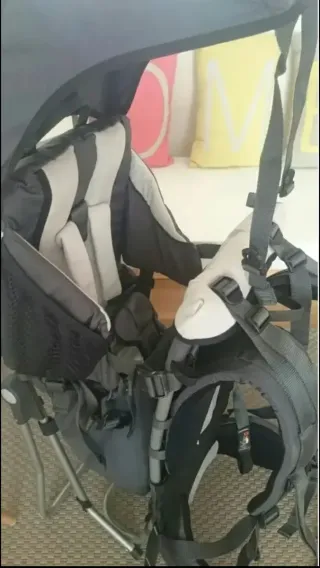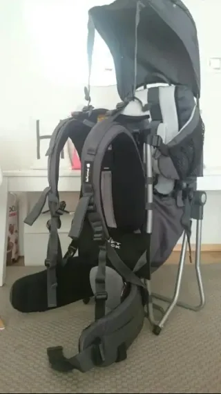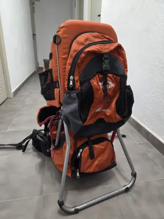 Mochila portabebés para montaña, en perfecto estado. Ideal para excursiones con tu peque. - Cómoda y práctica. - Con capota para proteger del sol. - Incluye arnés de seguridad. - Ligera y fácil de transportar.