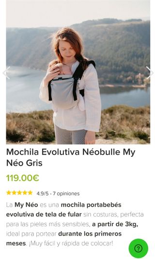 Mochila portabebé de la marca Neobulle. La recomiendo sobre todo para recién nacido hasta los 4 meses aproximadamente. No todas las mochilas son para desde el nacimiento pero esta sí. Y a partir de los 4 meses hay otro tipo de mochilas adaptadas a más peso.