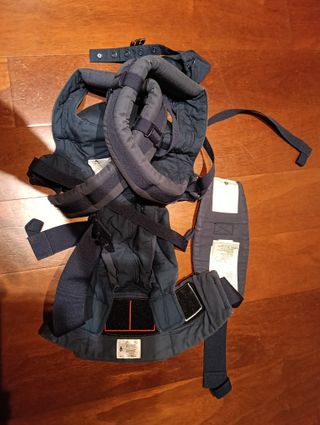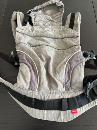 Mochila de porteo de bebes, desde nacimiento (3,5kg) hasta 3 años que la hemos usado. Muy cómoda para llevar y para el bebé. Fácil ajuste y lavado. Color gris. Usada pero cumple su función perfectamente.