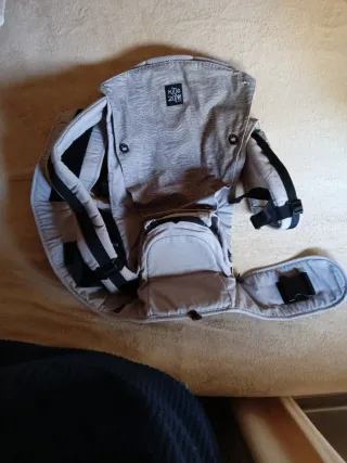 Mochila portabebés en color gris y negro, ideal para llevar al bebé de forma cómoda y segura. Diseñada para el confort tanto del bebé como del portador. - Tejido suave y resistente. - Diseño ergonómico. - Cierres ajustables.