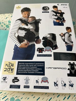 Mochila portabebés ergonómica de la marca Jane, modelo Kangaroo. - Diseñada para 3 posiciones. - Apta para bebés de 3,5 a 15 kg. - Cierre rápido y seguro. - Diseño ergonómico para el porteo.