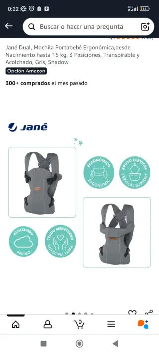 Mochila portabebé Jané Dual en color Gris Shadow. Es ergonómica y transpirable. - Apta desde el nacimiento hasta los 15 kg. - Cuenta con 3 posiciones de uso. - Acolchado para mayor comodidad.
