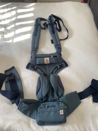 Mochila portabebés Ergobaby en color gris. Diseñada para llevar al bebé de forma cómoda y segura. - Tirantes acolchados. - Cinturón lumbar ajustable. - Hebillas de seguridad. Adaptador incluido