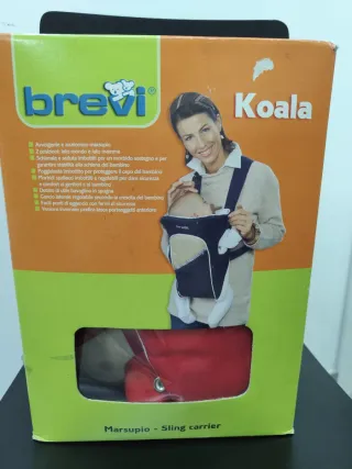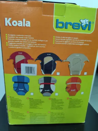 Mochila portabebés Brevi modelo Koala, diseñada para el confort y la seguridad. Nunca la he llegado a usar , está como nueva. - Acolchado en el respaldo y asiento. - Capucha protectora. - Hombreras acolchadas y ajustables. - Incluye babero. - Cierre lateral regulable. - Cierres de seguridad.