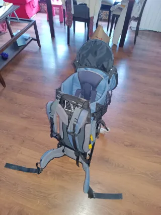 Mochila portabebés de la marca Decathlon, ideal para llevar a los más pequeños en tus aventuras. - Diseño ergonómico. - Múltiples compartimentos de almacenamiento. - Tirantes acolchados para mayor comodidad.