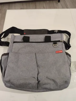 Mochila Skip Hop en color gris, ideal para llevar todo lo necesario para el bebé. - Compartimento principal con cierre de cremallera. - Bolsillos exteriores frontales. - Asas de mano y correa ajustable. - Detalle de logo Skip Hop en naranja. Además de regalo dos colchonetas de Tuc Tuc y una manta (sin estrenar)