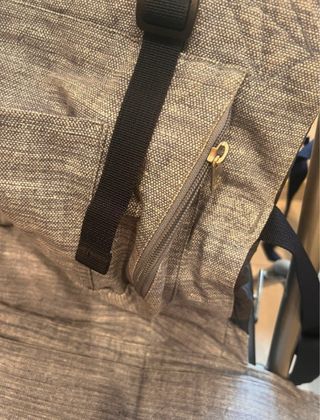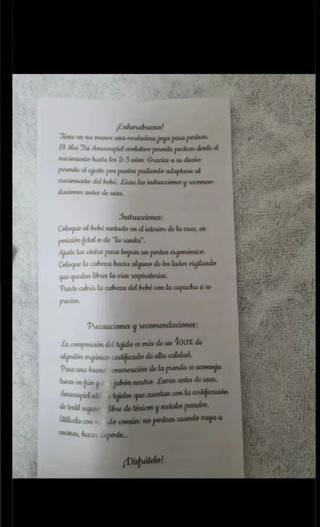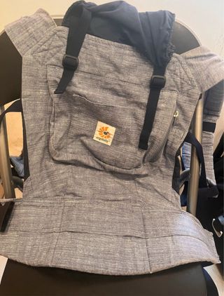Mochila de porteo en perfecto estado, ideal para llevar a tu bebé cómodamente. - Color beige y marrón. - Tejido resistente y suave. - Tirantes ajustables.