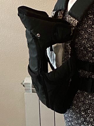 Mochila portabebés en color negro, ideal para llevar al bebé de forma cómoda y segura. - Diseño ergonómico. - Correas ajustables. - Hebillas de seguridad.