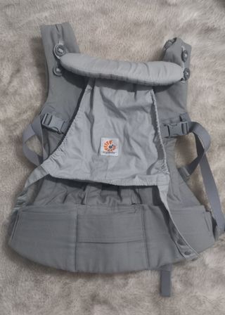 Mochila de porteo Ergobaby Adapt en color gris. Es una mochila ergonómica y evolutiva ya que es apta desde recién nacido y se puede ajustar según el crecimiento del niño. Cuenta con capucha para proteger al bebé del sol. Cuenta con soporte lumbar acolchado para mayor comodidad. - Color gris. - Marca Ergobaby. - Modelo Adapt.