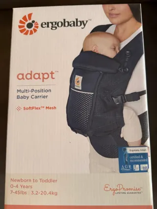 Mochila portabebés Ergobaby Adapt en tejido SoftFlex Mesh. Diseñada para recién nacidos hasta niños pequeños. - Apta para bebés de 3.2-20.4 kg. - Posibilidad de múltiples posiciones de porteo. - Certificada y recomendada por AGR.