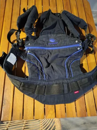 Mochila portabebés Manduca en color azul y beige. Diseñada para llevar a los bebés de forma cómoda y segura. - Tejido exterior de algodón. - Correas acolchadas para los hombros. - Cinturón lumbar ajustable. Usada por una amiga en 5 ocasiones y no usada por mí, por lo que está perfecta. Se entrega limpia.