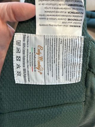 Mochila portabebés Baby Monkey, ideal para llevar a tu bebé de forma segura y cómoda. - Fabricada en Italia. - Exterior: 100% Algodón. - Forro de bolsillo: 100% Poliéster. - Cumple la norma UNI11736:2020. - Apta para bebés de 5.5kg a 18kg.