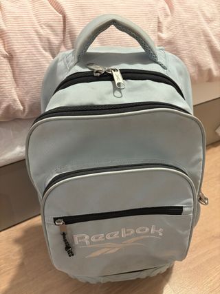Mochila escolar de la marca Reebok en color azul claro. Cuenta con varios compartimentos para organizar tus pertenencias. - Logo de Reebok bordado en la parte frontal. - Cierre de cremallera. - Asa superior y tirantes ajustables.