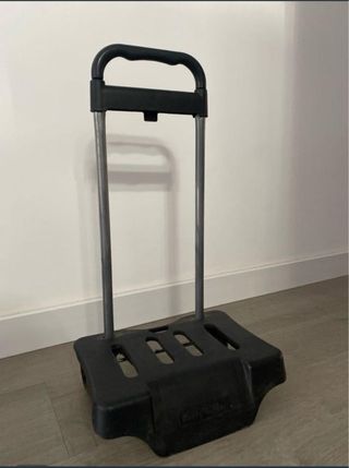 Carro de transporte para mochilas con ruedas. Su diseño es práctico y funcional. - Base de plástico resistente. - Dos ruedas para facilitar el desplazamiento. - Asa extensible para mayor comodidad.