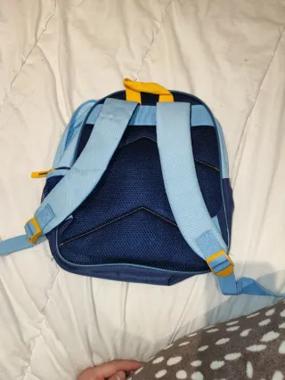 Mochila infantil con el personaje Bluey. La cremallera del bolsillo de fuera está rota, habría que cambiarla - Diseño frontal de Bluey. - Color azul. - Tirantes ajustables. Precio negociable si te llevas varias cosas del perfil