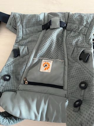 Mochila portabebés ergonómica en color gris. Desde el nacimiento hasta lod 20kg. Su precio nueva son 127€. Solo 1 uso, el bebé no la toleraba - Tejido exterior con textura. - Panel frontal de malla transpirable. - Bolsillo con cremallera. - Cierres de clip ajustables.