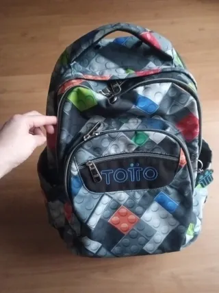 Mochila Totto en muy buen estado. Se le puede seguir dando micho uso. No tiene desperfectos, agujeros... Reforzado en la base de la mochila 4 compartimentos