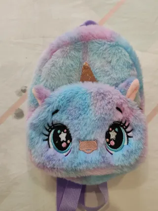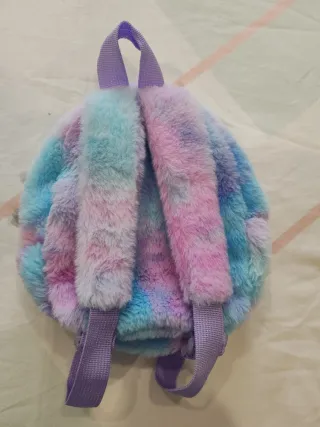 Adorable mochila de unicornio infantil, perfecta para los más pequeños. Suave al tacto y con un diseño encantador. - Material de peluche. - Colores pastel (azul, rosa, morado). - Orejas y cuerno de unicornio. - Ojos bordados con estrellas. Fue un regalo de cumpleaños y ya teníamos muchas mochilas, esta sin usar.